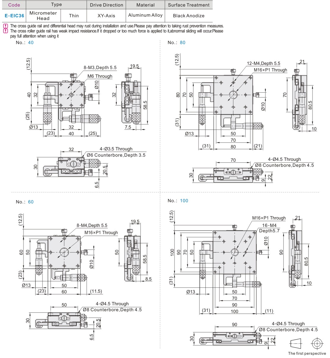 The cross guide rails and microheads may rust during installation and use. Please be sure to take anti-rust measures.