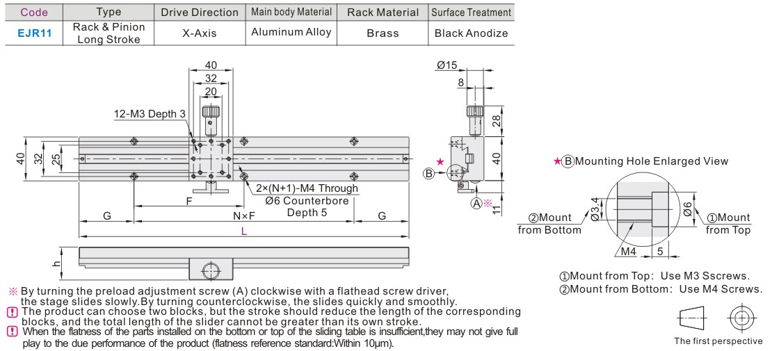 Dovetail Groove Type Manual Displacement Table Long Stroke Rack And Pinion Drive Type Standard X Axis