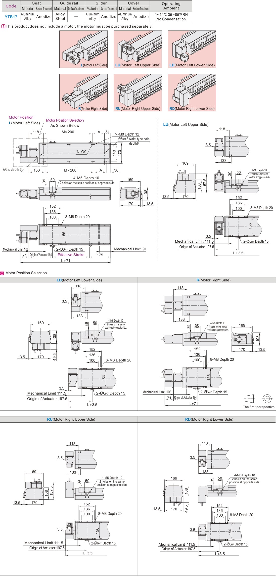 Single Axis Robot YTB17 Series·Base Width 170mm Timing Belt Series·General Environment Type