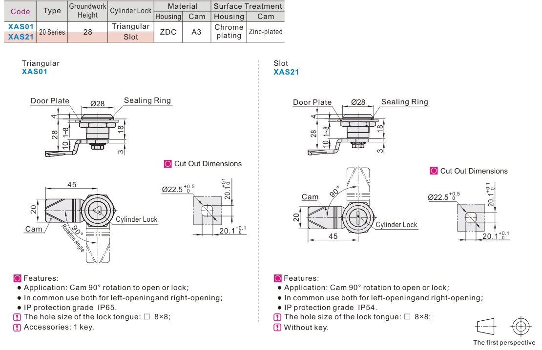 Cylinder Lock 20 Series Notch Height Of 19~28