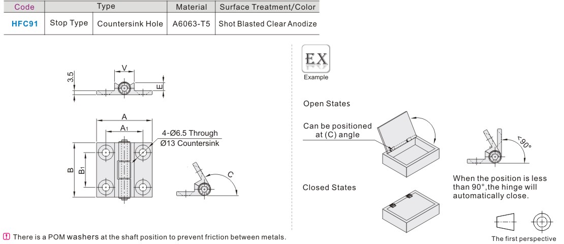 Aluminum Alloy Butterfly Hinge Flat Limit Type·Taper Hole Type