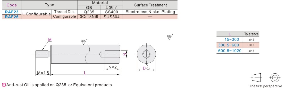 Round Pillar One End Threadedone End Tapped L Dimension Configuration Type Screw Configuration