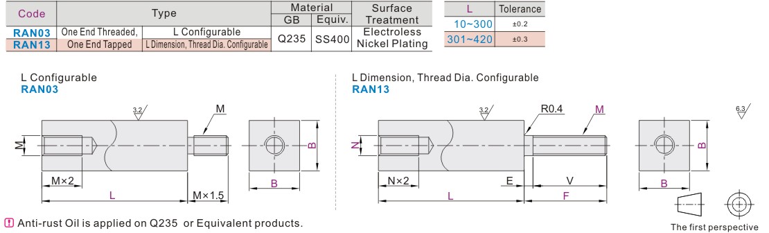 Square Pillar One End Threded One End Tapped L Dimension Configuration Type/L Dimension Screw Configuration Type