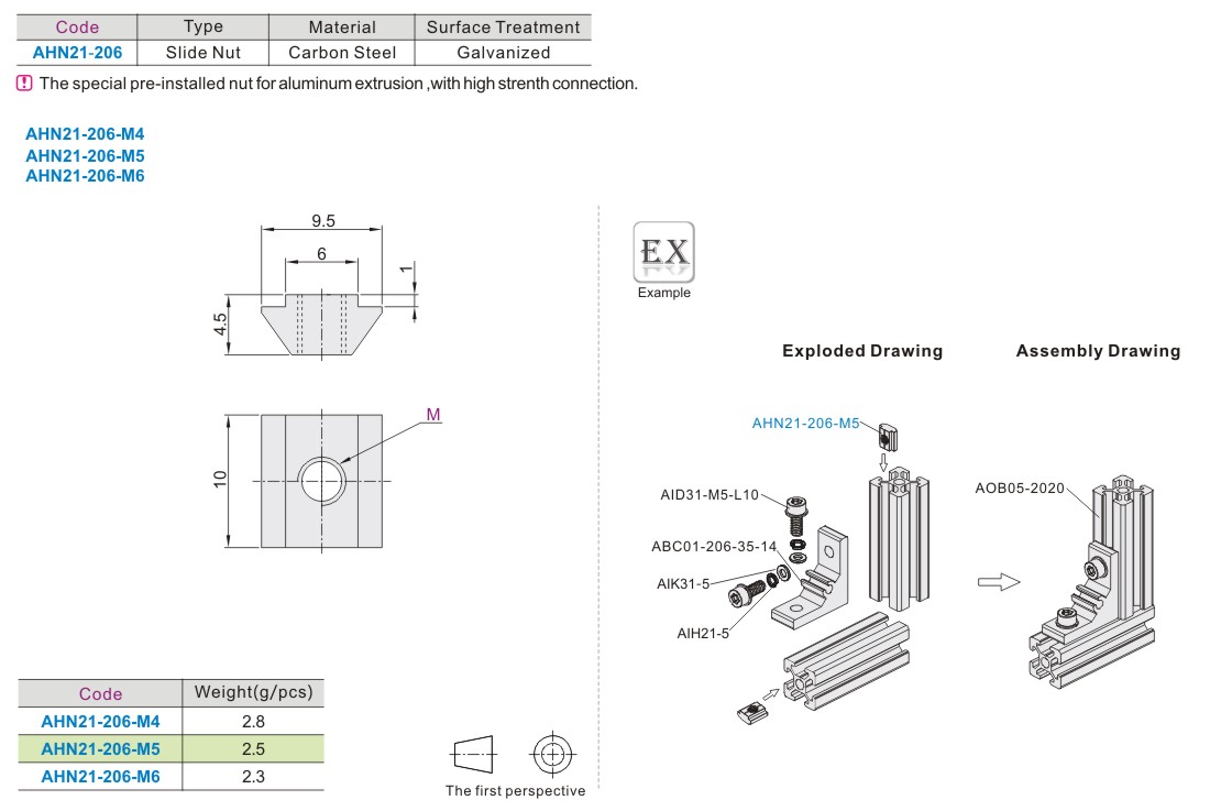 Slider Nut - 20 Series Extrusion Accessories Fastening Part