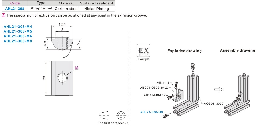 • Shrapnel Nut - 30 Series Extrusion Accessories Fastening Part