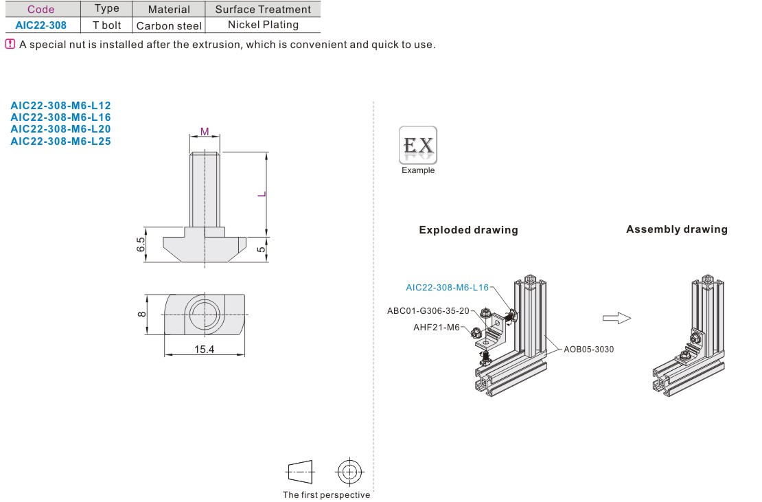 Home  Profiles and accessories  Aluminum Extrusion  T Bolt - 30 Series Extrusion Accessories Fastening Part