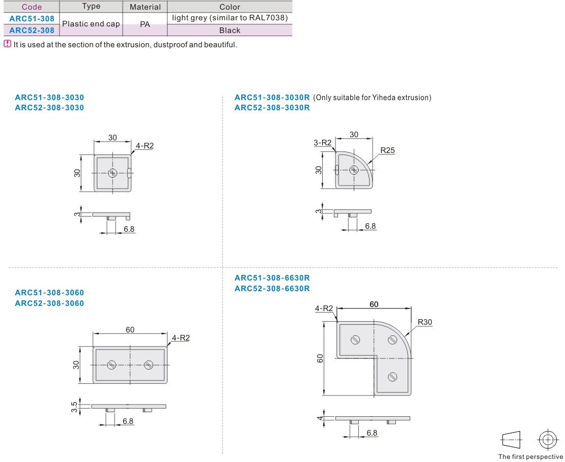 Plastic End Cap - 30 Series Aluminium Profiles Decorative Type Attachment Section