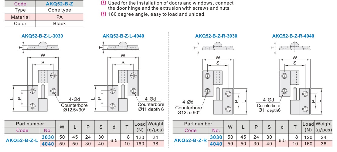 Home  Profiles and accessories  Aluminum Extrusion  General Accessories Of Extrusion Door Frame Part Pull-In Nylon Hinges