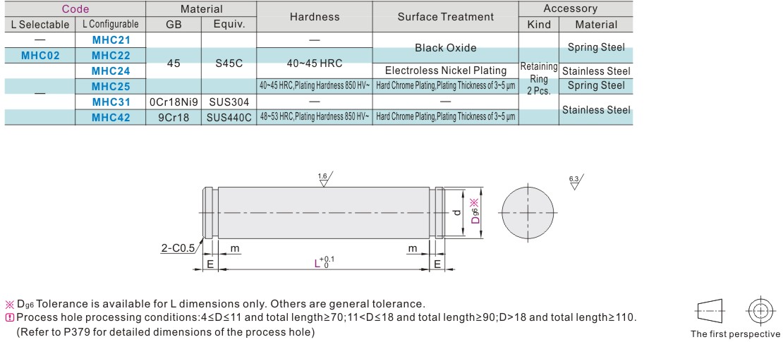 Hardness options: None/40-45HRC, Coating Hardness 850HV-/40-45HRC/48-53HRC/48-53HRC, Coating Hardness 850HV-