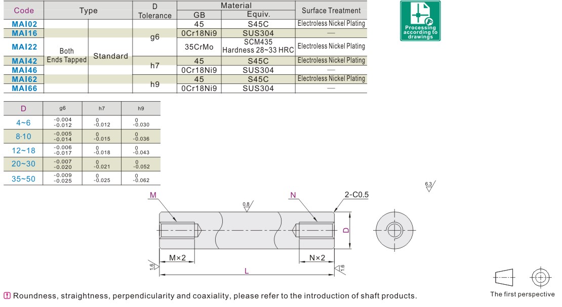 Rotating Shaft Straight Type Both Ends Tapped Standard