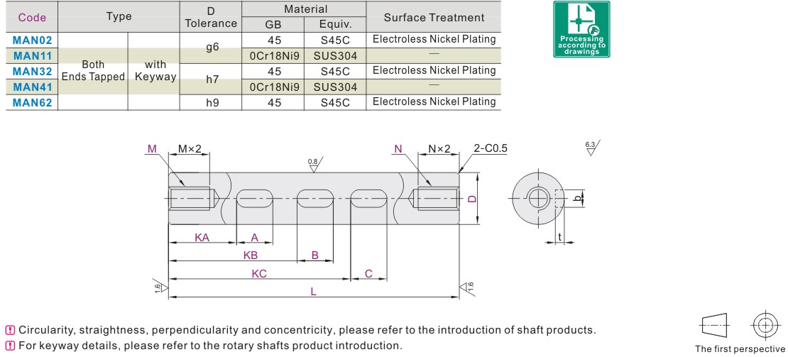 Rotating Shaft Straight Type Both Ends Tapped With Keyway