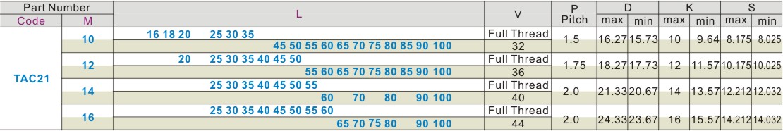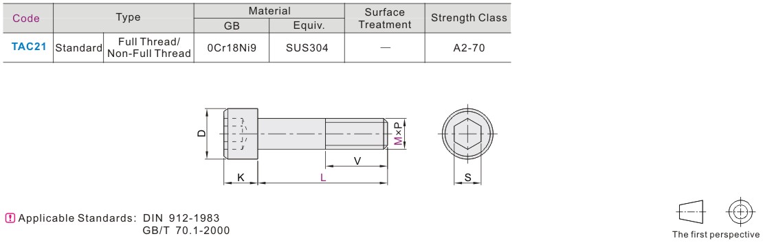Hexagon socket head cap screw standard type full/half thread coarse thread