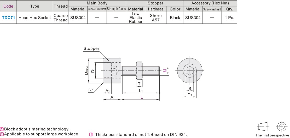 Hexagon socket head screw with stop block Block material:low elastic rubber Regulatory type