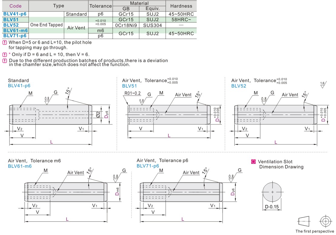 Straight Type Positive Tolerance Locating Pin With One End Tapped Standard Type/With Ventilation Groove Type/Economical Type