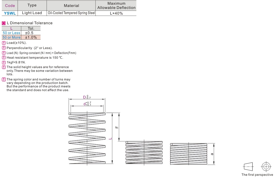 There are no parameters for the wire diameter of rectangular springs. The number of turns, pitch, and wire diameter of rectangular springs are not controlled (in order to ensure the load requirements, the number of turns and wire diameter and other parameters need to be adjusted for each batch, so there are differences in inventory), only the external dimensions and load of rectangular springs are controlled.