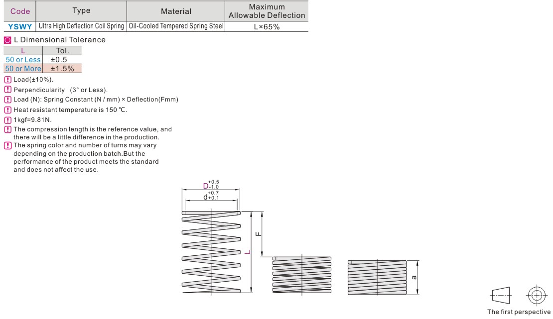 There are no parameters for the wire diameter of rectangular springs. The number of turns, pitch, and wire diameter of rectangular springs are not controlled (in order to ensure the load requirements, the number of turns and wire diameter and other parameters need to be adjusted for each batch, so there are differences in inventory), only the external dimensions and load of rectangular springs are controlled.