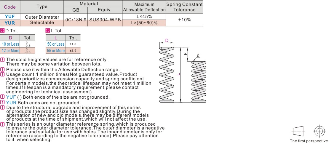 Compression Spring Outer Diameter Reference Stainless Steel Allowable Displacement L×45%/L×(50~60)%