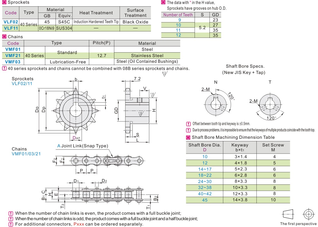 Due to the process and the preparation of different production batches, it is impossible to ensure that the keyway positions of all sprockets are consistent. Therefore, when multiple sprockets need to be used synchronously, you need to note the working conditions after the model when placing an order. For example: VLD02-35-16-D14 (keyways are paired in pairs, and sprockets are used synchronously)