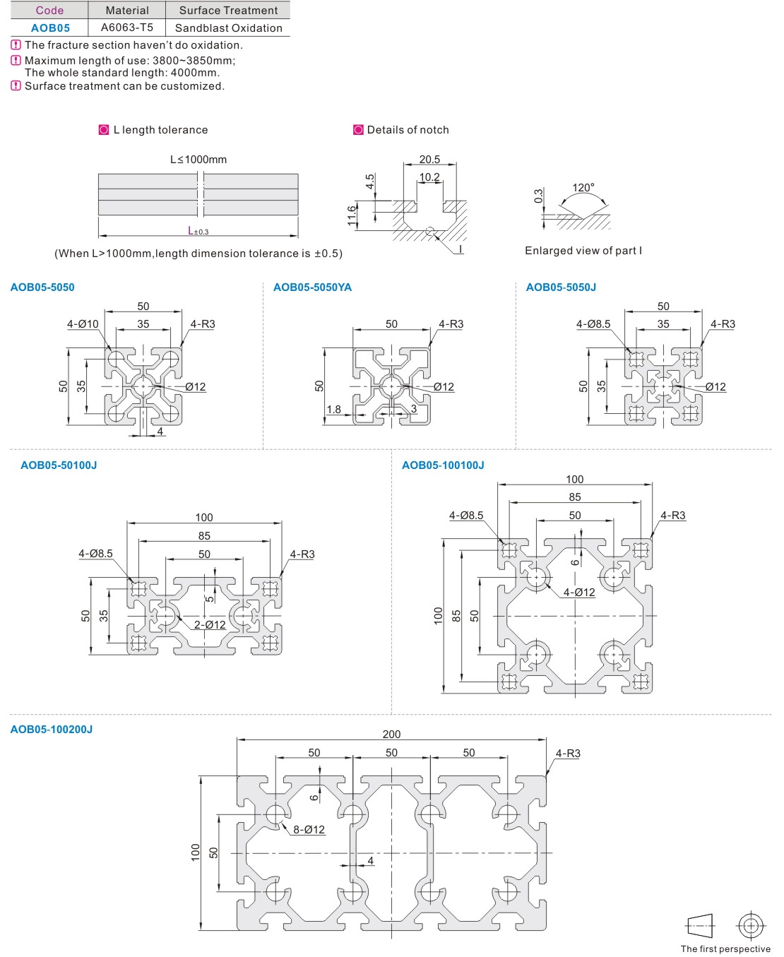 • 50 Series Extrusion Groove Width 10.2 Wall Thickness Of Notch 4.5