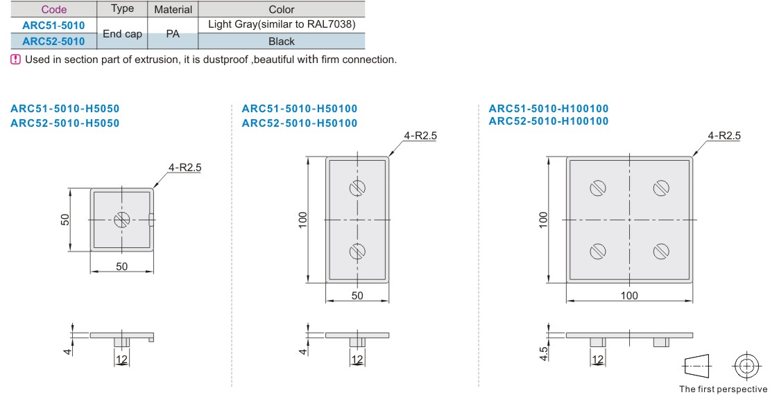 • Plastic End Cap - 50 Series Aluminium Profiles Decorative Type Attachment Section