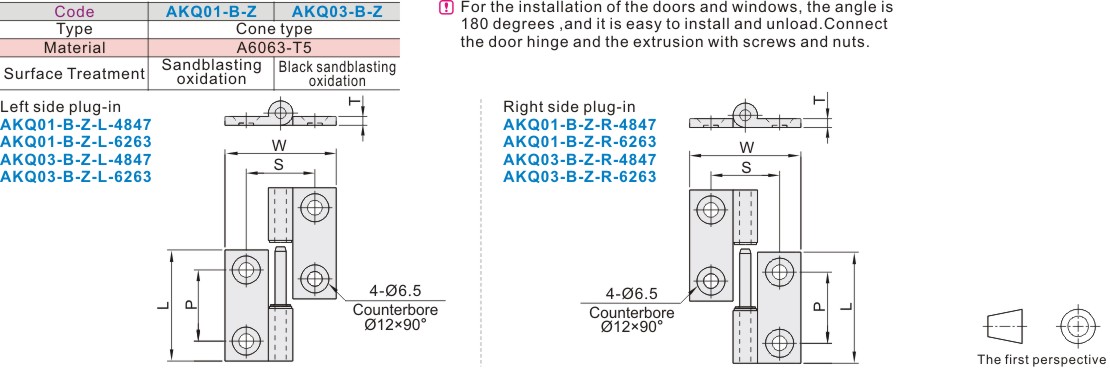 Home  Profiles and accessories  Aluminum Extrusion  General Accessories Of Extrusion Door Frame Part Aluminum Alloy Hinge Taper Hole Type