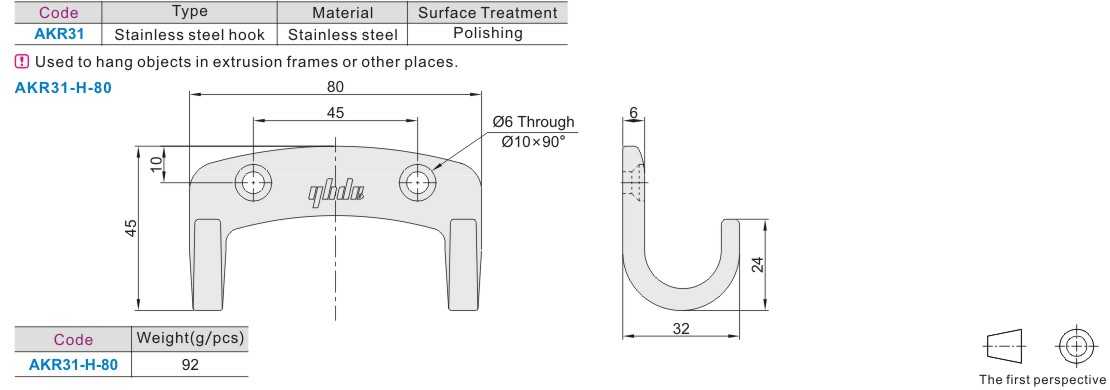 Home  Profiles and accessories  Aluminum Extrusion  General Accessories Of Extrusion Door Frame Part Stainless Steel Hook