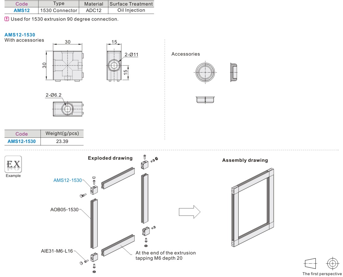 Home  Profiles and accessories  Aluminum Extrusion  General Accessories Of Extrusion Door Frame Part 1530 Connector